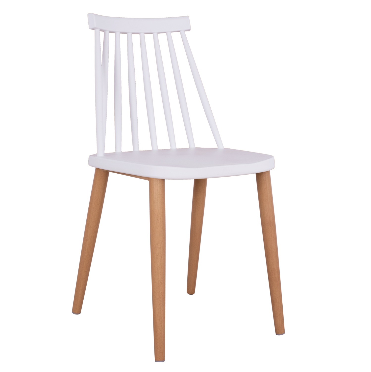 Μοντέρνα καρέκλα τραπεζαρίας VANESSA με κάθισμα από πολυπροπυλένιο και μεταλλικά πόδια με απόδοση στο φυσικό χρώμα του ξύλου.