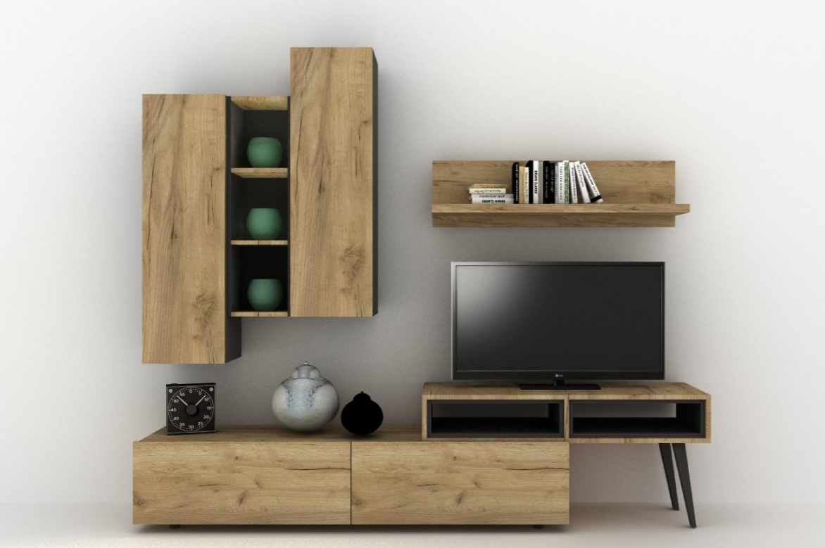 Η σύνθεση BEST αποτελεί μια μοντέρνα και πρακτική λύση για το σαλόνι σας. Το άνω τμήμα του επίπλου tv , είναι κινητό και μπορεί να τοποθετηθεί και υπό κλίση (μπορεί να τοποθετηθεί ακόμα και από αντίθετη μεριά)