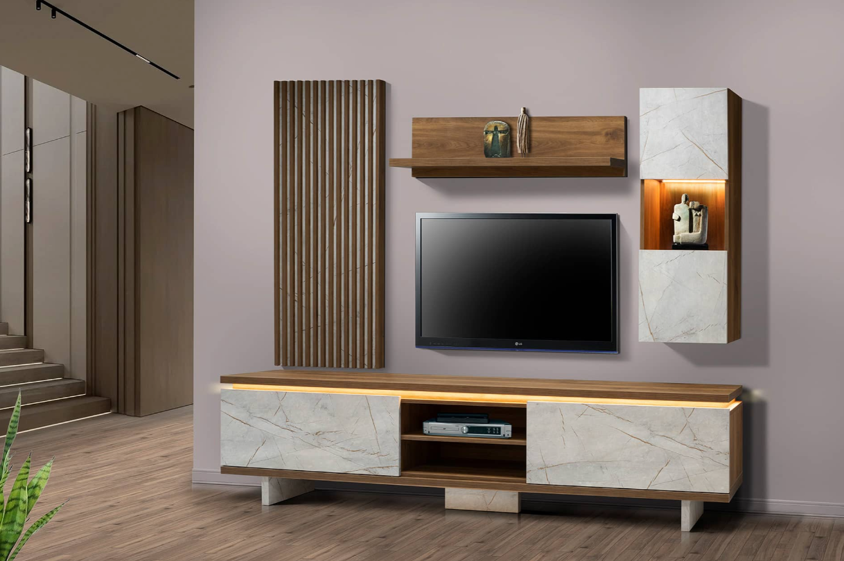 Η σύνθεση σαλονιού VALENTINO B προσφέρει μια ολοκληρωμένη λύση για την οργάνωση και την ανανέωση του χώρου σας, ενώ παράλληλα διατηρεί την κομψότητα και την λειτουργικότητα που αναζητάτε. Ανακαλύψτε την σήμερα και δώστε στο σαλόνι σας την ανανέωση που του αξίζει!