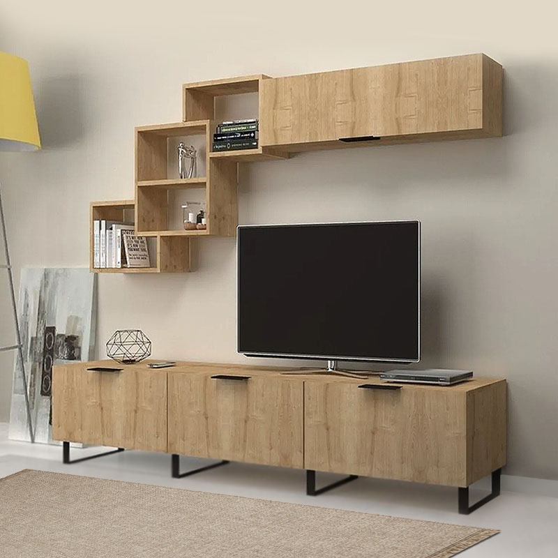 Σύνθεση τηλεόρασης Heydar Megapap από μελαμίνη χρώμα φυσικό οξιάς 210x35x50εκ.