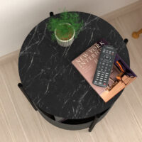 0212585 Βοηθητικό τραπεζάκι Kalid Megapap μελαμίνης – υφασμάτινο χρώμα μαύρο εφέ μαρμάρου – γκρι 43x43x60εκ. Μέταλλο/Μοριοσανίδα με επένδυση μελαμίνης, 1 Τεμάχιο