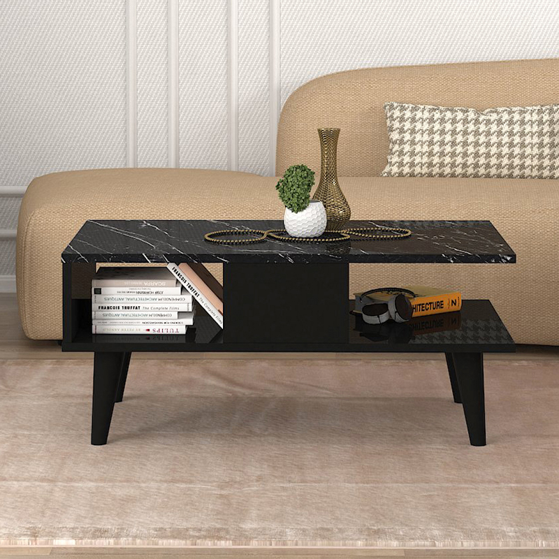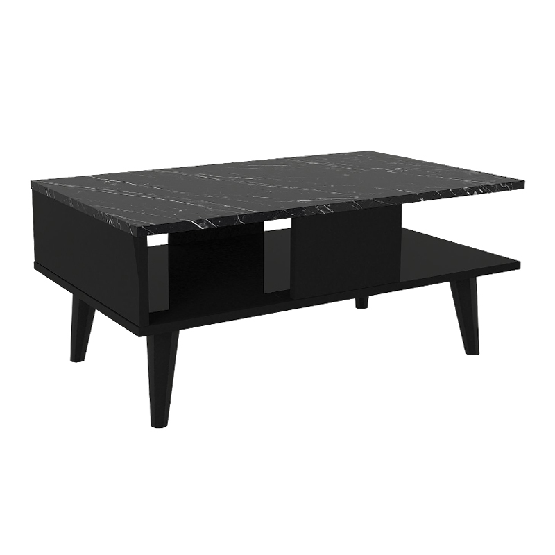 Τραπεζάκι σαλονιού Andros Megapap χρώμα μαύρο – μαύρο εφέ μαρμάρου 90x54x39,6εκ.