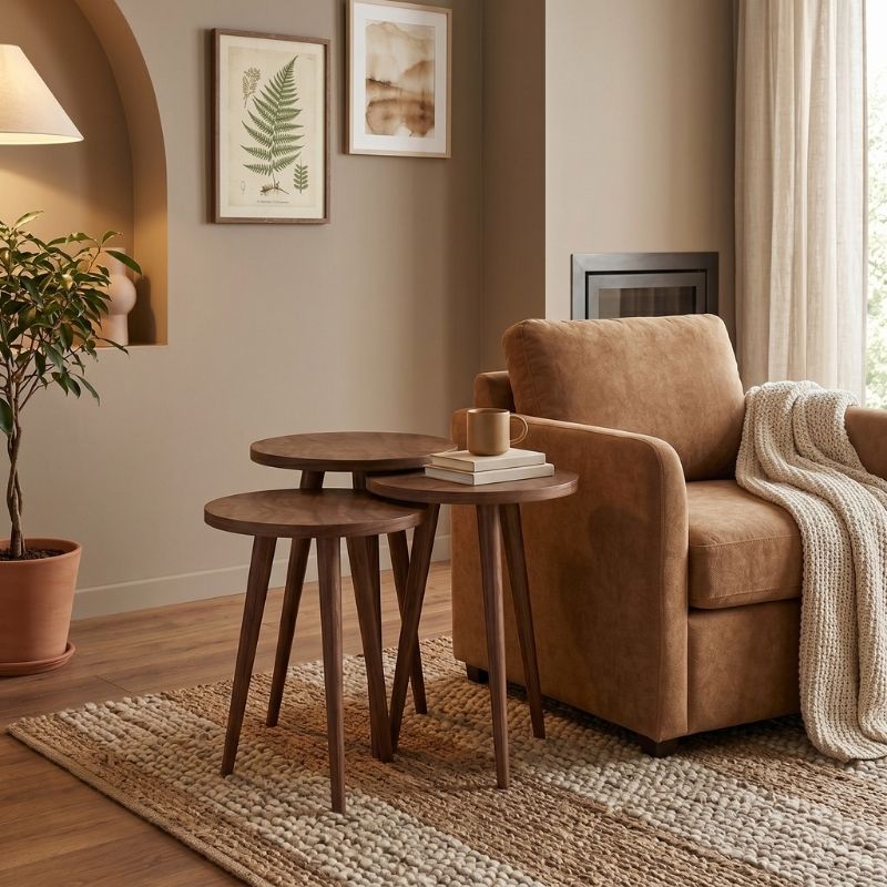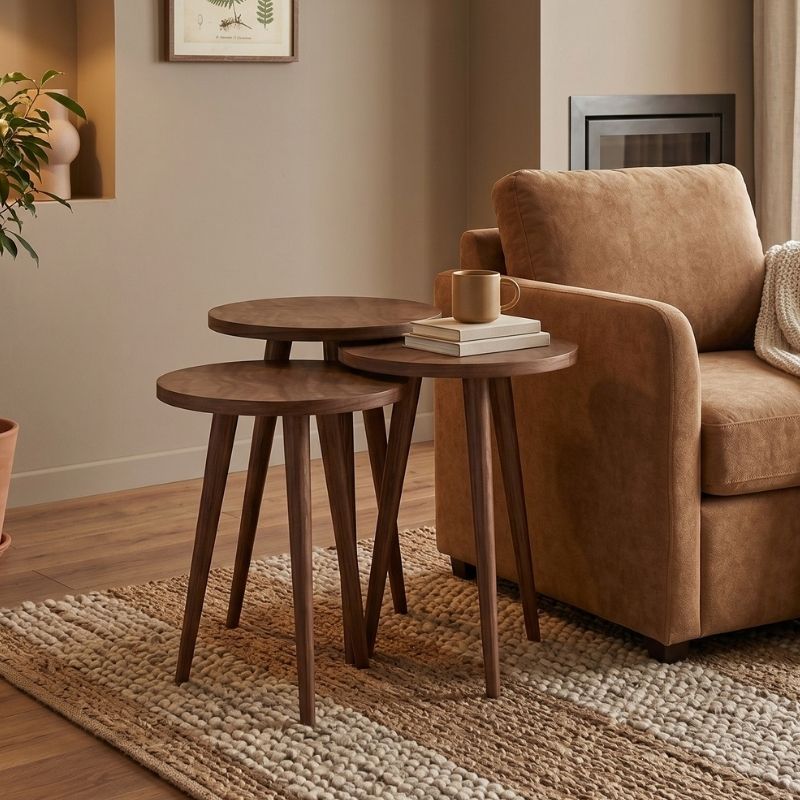 0281257 Τραπεζάκι βοηθητικό σετ 3 τμχ Cruz Megapap χρώμα καρυδί Ø33×46εκ. Μοριοσανίδα με επένδυση μελαμίνης, 1 Τεμάχιο