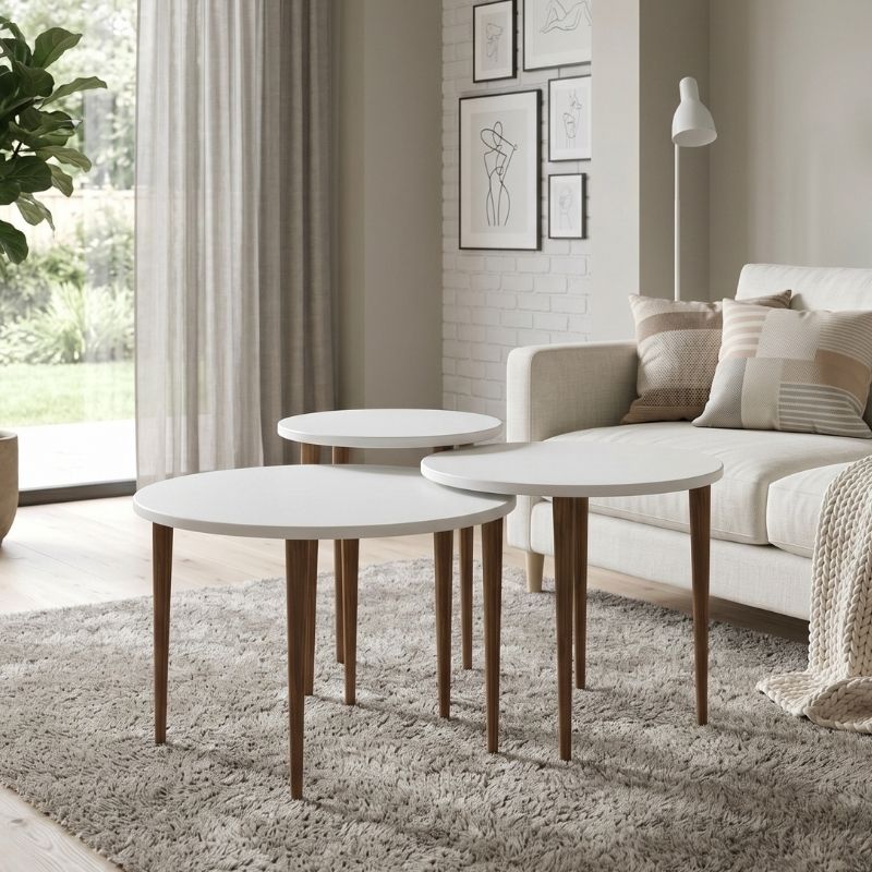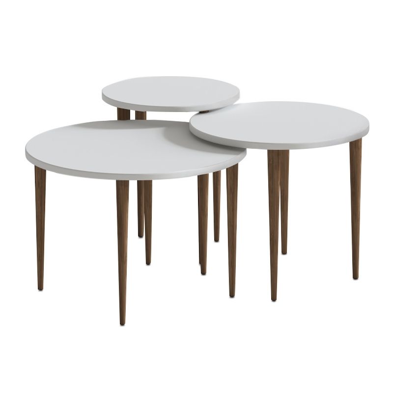 Τραπεζάκι σαλονιού σετ 3 τμχ Nola Megapap χρώμα λευκό Ø60×46εκ.