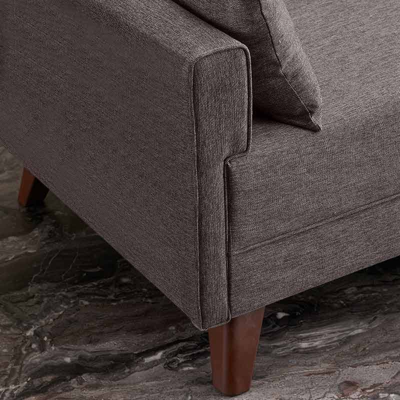 • Φέρει πόδια από πολυπροπυλένιο, ειδικά σχεδιασμένο για καναπέδες, με ξύλινη εμφάνιση σε καρυδί χρώμα.
