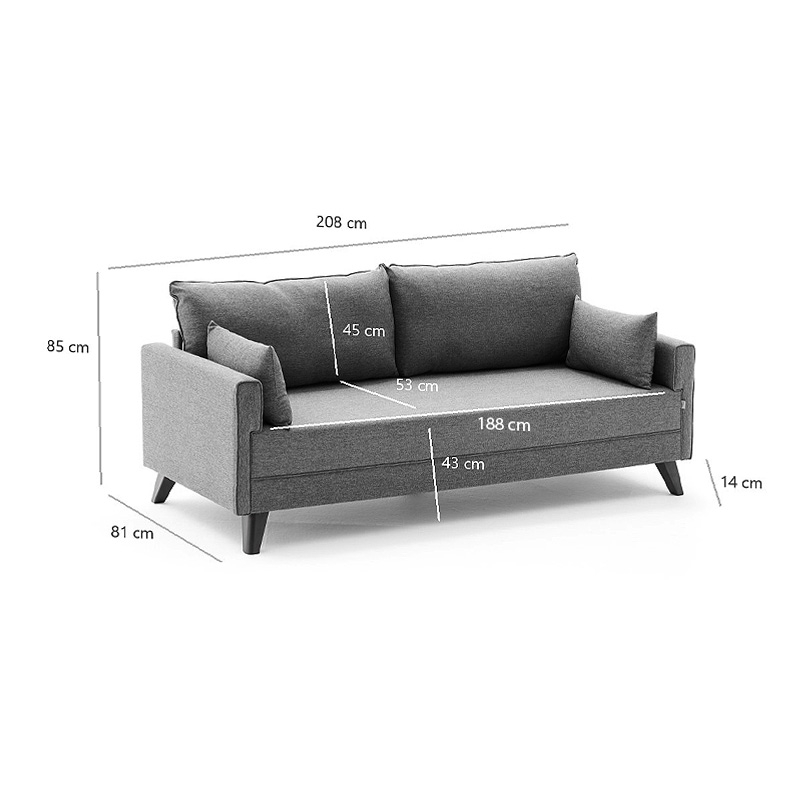 • Διαστάσεις: Μήκος 208 x Βάθος 81 x Ύψος 85 εκ.