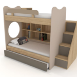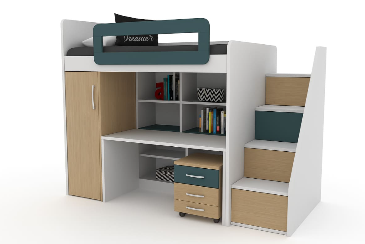 Η ψηλή κουκέτα για το εφηβικό δωμάτιο, που χαρακτηρίζεται από εξαιρετική σταθερότητα και ποιότητα. Πλούσιοι αποθηκευτικοί χώροι στη ντουλάπα , στη βιβλιοθήκη αλλά και στα σκαλοπάτια. Πρόκειται για μια λύση που θα λατρέψει κάθε έφηβος.