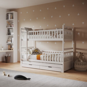 Σας παρουσιάζουμε το καινούργιο παιδικό κρεβάτι-κουκέτα AKRON σε διάσταση για μονό στρώμα 90×190 εκ, και αποτελεί μια άριστης ποιότητας, μοντέρνα και ασφαλή επιλογή για το παιδικό δωμάτιο. Είναι ξύλινο σε ΦΥΣΙΚΟ χρώμα βαμμένο με αβλαβές βερνίκι με βάση το νερό και μη τοξικό, ιδανικό για παιδιά. Το στρώμα τοποθετείται σε τάβλες κατασκευασμένες από ξυλεία κόντρα πλακέ. Η πρόσβαση στο κρεβάτι γίνεται με πρακτική σκάλα, ενώ στο κάτω μέρος υπάρχει γωνιακό γραφείο. Μια ιδανική πρόταση για δωμάτια με περιορισμένο χώρο.