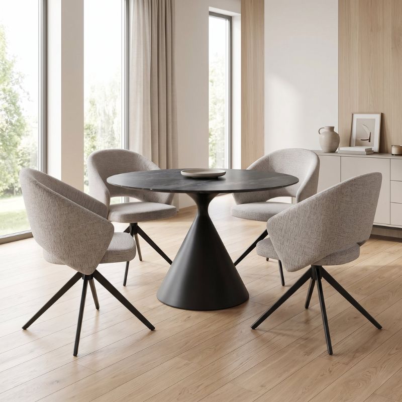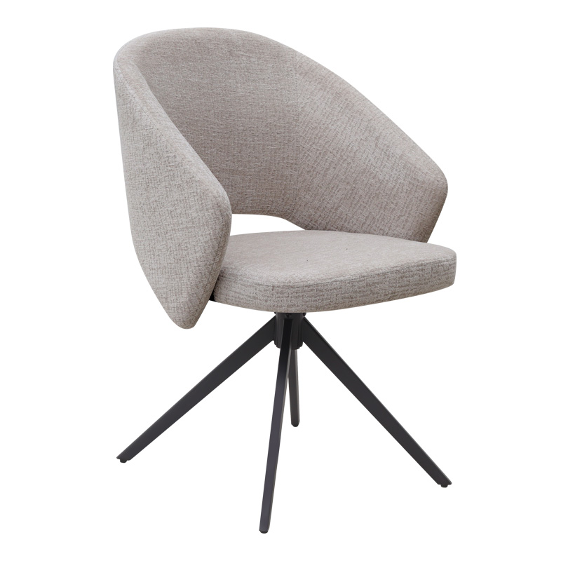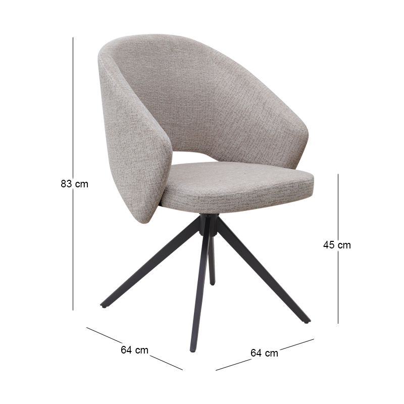 Πολυθρόνα τραπεζαρίας Milano Megapap περιστρεφόμενη χρώμα ανοιχτό μπεζ ύφασμα – μεταλλικό μαύρο πόδι 64x64x83εκ.