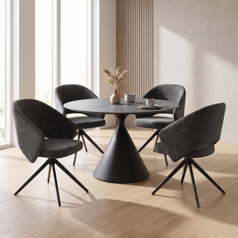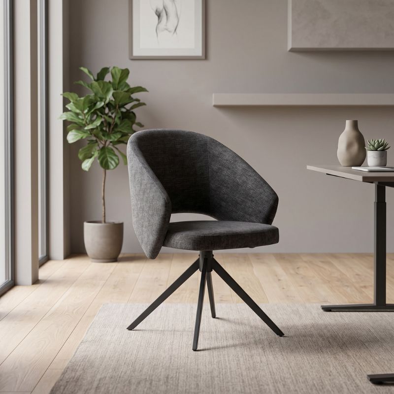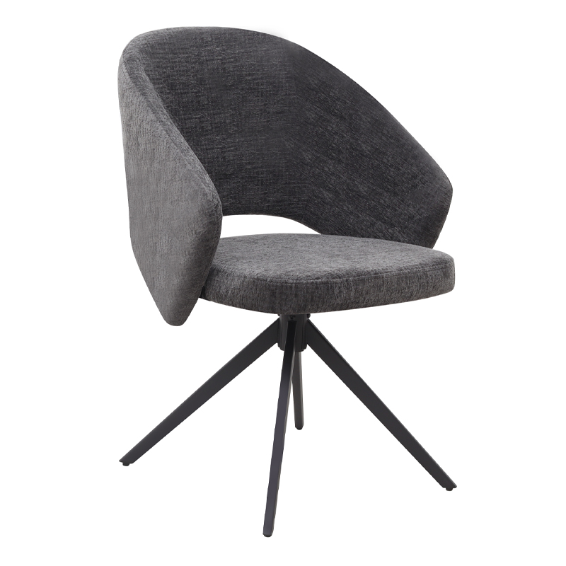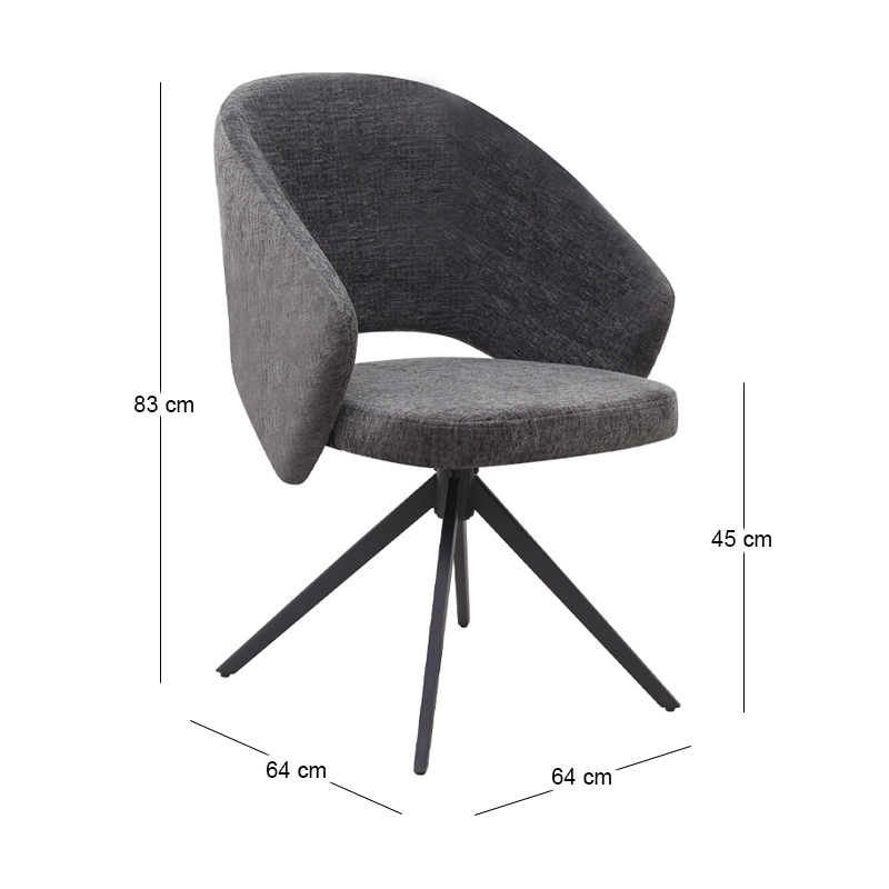 Πολυθρόνα τραπεζαρίας Milano Megapap περιστρεφόμενη χρώμα ανθρακί ύφασμα – μεταλλικό μαύρο πόδι 64x64x83εκ.