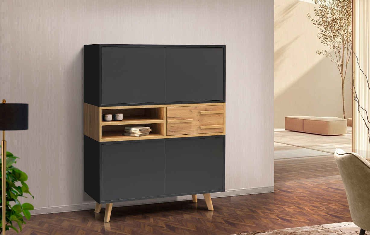 Ο ψηλός μπουφές ELITE θα δώσει τη λύση όταν ο χώρος είναι περιορισμένος αλλά οι ανάγκες αποθήκευσης μεγάλες ! Design εμπνευσμένο από τη δεκαετία των 60΄s. Έχει 4 πόρτες , 1 μεγάλο συρτάρι και ελεύθερο χώρο για διακοσμητικά .