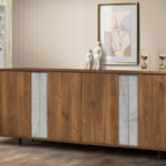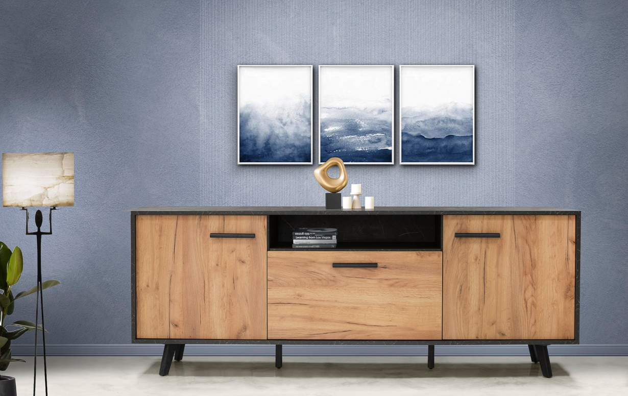 O μπουφές sixties έχει στο εσωτερικό κάθε πόρτας ένα ράφι. Στο κεντρικό τμήμα κάτω από το κενό , έχει μια μεγάλη μπαρόπορτα η οποία ανοίγει προς τα κάτω. Υπέροχος και πολύ πρακτικός.