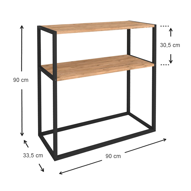 Κονσόλα Castel Megapap μεταλλική – μελαμίνης χρώμα μαύρο – pine oak 90×33,5×90εκ.
