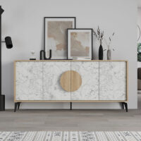 Μπουφές μελαμίνης Gora Megapap χρώμα φυσικό οξιάς – λευκό εφέ μαρμάρου 180×35,6×82εκ.
