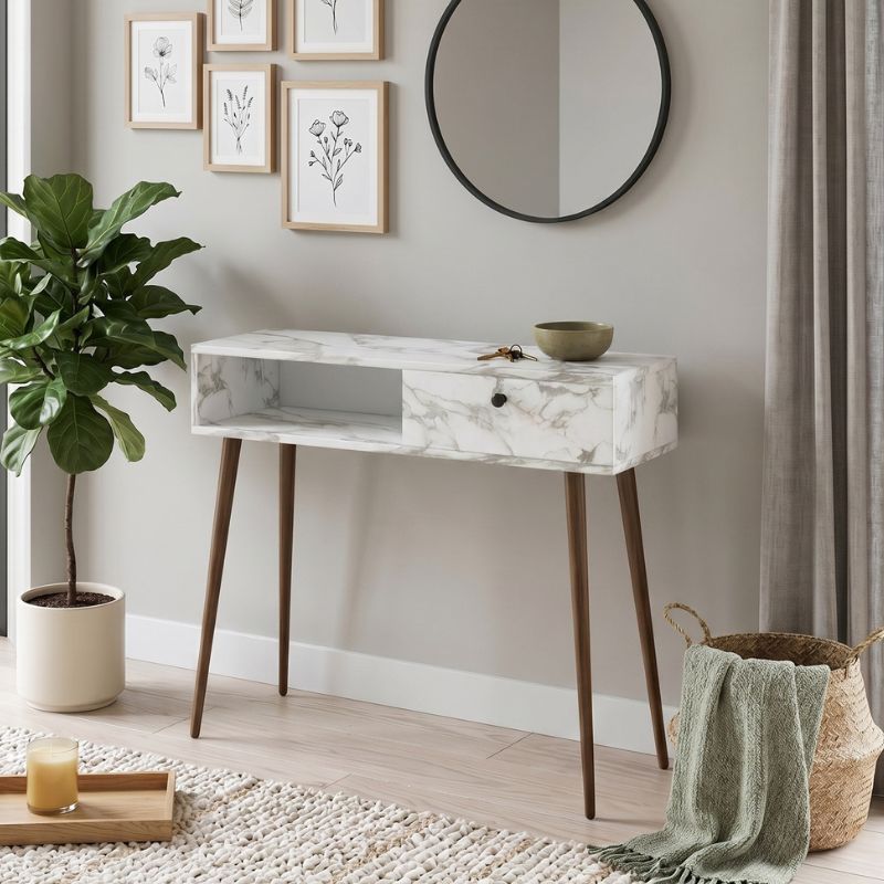 Κονσόλα Napoli Megapap χρώμα λευκό εφέ μαρμάρου 90x29x88εκ.