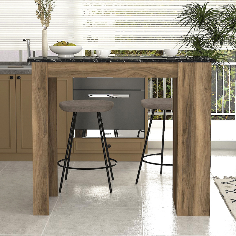 0276706 Τραπέζι μπαρ Monaco Megapap χρώμα καρυδί – μαύρο εφέ μαρμάρου 120×51,6×101,8εκ. Μοριοσανίδα με επένδυση μελαμίνης, 1 Τεμάχιο