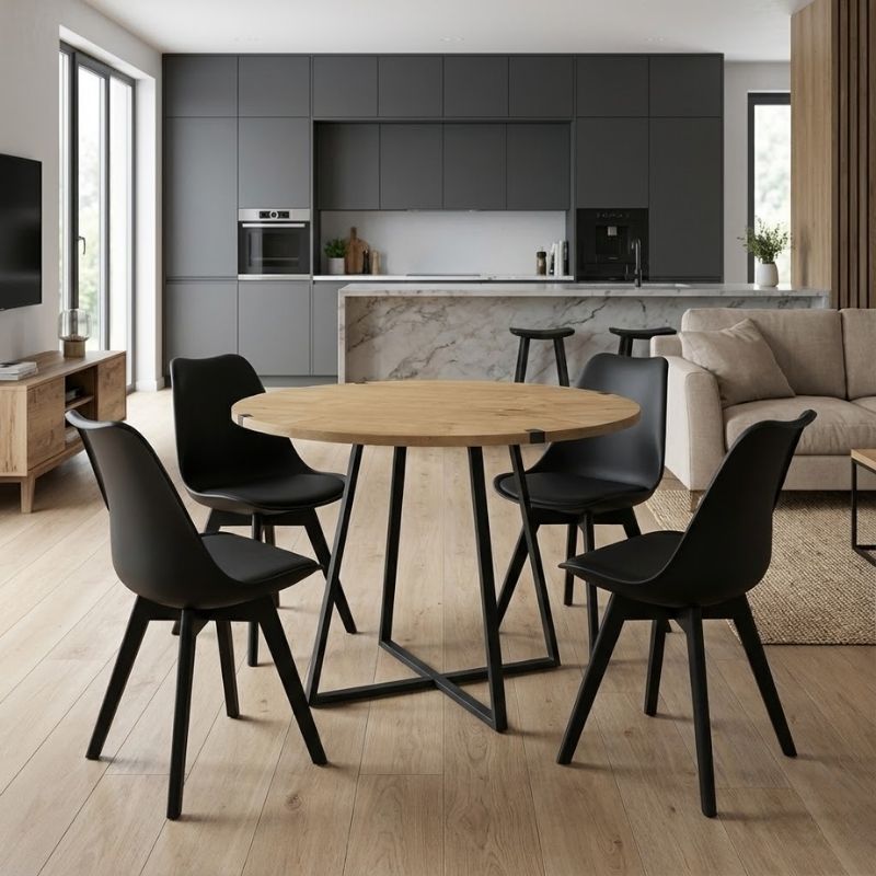 Σετ τραπεζαρία 5τμχ Rubes – Viva Megapap χρώμα φυσικό οξιάς – μαύρο Ø100x78εκ.