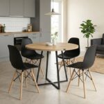 Σετ τραπεζαρία 5τμχ Rubes – Christy Megapap χρώμα φυσικό οξιάς – ανοιχτό μπεζ Ø100×78εκ.