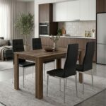 Σετ τραπεζαρία 5τμχ Darlen – Rosa Megapap χρώμα καρυδί – γκρι/χρωμίου πόδι 125x72x74εκ.