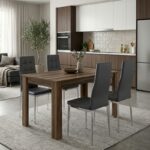 Σετ τραπεζαρία 5τμχ Darlen – Rosa Megapap χρώμα καρυδί – καφέ/χρωμίου πόδι 125x72x74εκ.