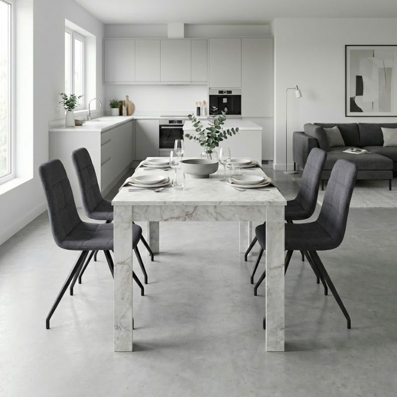 Σετ τραπεζαρία 5τμχ Darlen – Bianca Megapap χρώμα λευκό εφέ μαρμάρου – γκρι 125x72x74εκ.