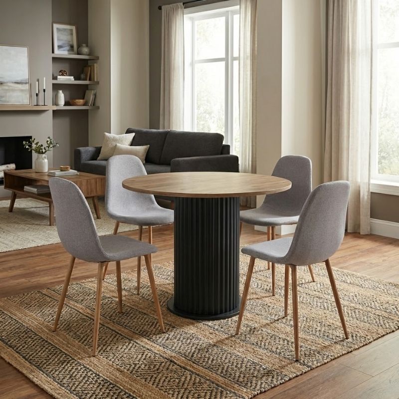 Σετ τραπεζαρία 5τμχ Bohema – Iris Megapap χρώμα μαύρο/sepet oak – ανοιχτό μπεζ/φυσικό πόδι Ø90×77,7εκ.