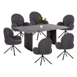 Αυτό το σετ τραπεζαρίας εσωτερικού χώρου αποτελείται από ένα τραπέζι DENTY και 4 καρέκλες VELP. Το DENTY είναι ένα στρογγυλό τραπέζι για την τραπεζαρία, με φαλτσοκομμένη επιφάνεια από MDF με καπλαμά δρυός σε χρώμα ΔΡΥΟΣ. Η επιφάνεια αυτή στηρίζεται σε μία πανέμορφη ξύλινη κυλινδρική βάση με ίδιο χρωματισμό. Οι καρέκλες VELP έχουν κάθισμα σε ΜΑΥΡΗ απόχρωση και ΜΑΥΡΑ μεταλλικά πόδια. Αυτό, όμως, που ξεχωρίζει είναι ότι ολόκληρη η πλάτη είναι ξύλινη σε ΦΥΣΙΚΟ χρώμα ΔΡΥΟΣ κι είναι κυρτή και αναπαυτική.