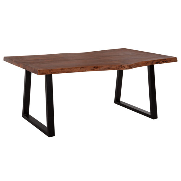 Ανακαλύψτε το μοναδικό μεγάλο χειροποίητο τραπέζι MONTANA με επιφάνεια από φυσικό μασίφ ξύλο ΑΚΑΚΙΑΣ σε ΦΥΣΙΚΟ χρώμα. To σχήμα της επιφάνειας με πάχος 5,5 εκατοστά είναι ΑΚΑΝΟΝΙΣΤΟ ορθογώνιο και στηρίζεται σε δύο μαύρες μεταλλικές βάσεις με τραπεζοειδές σχήμα. Το μοντέρνο design συναντά την φύση και δίνει μια διαχρονική και ζεστή αίσθηση στον χώρο σας.