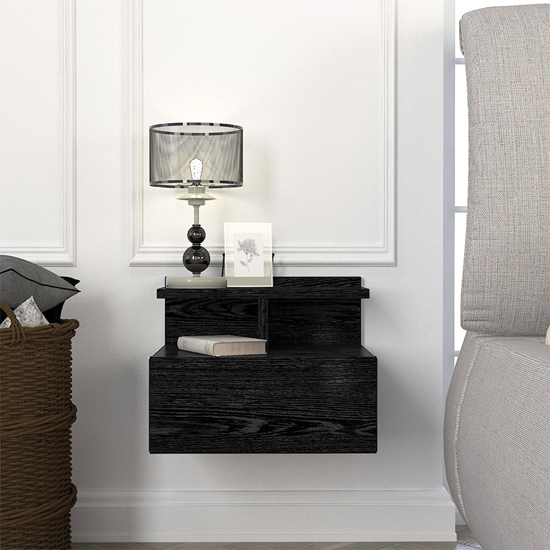 Κομοδίνο επιτοίχιο Mislina Megapap χρώμα sencron black 40×33,2×32εκ.