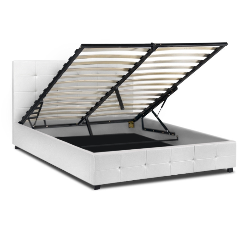 Κρεβάτι Iro Megapap από τεχνόδερμα με αποθηκευτικό χώρο χρώμα λευκό 150×200εκ.