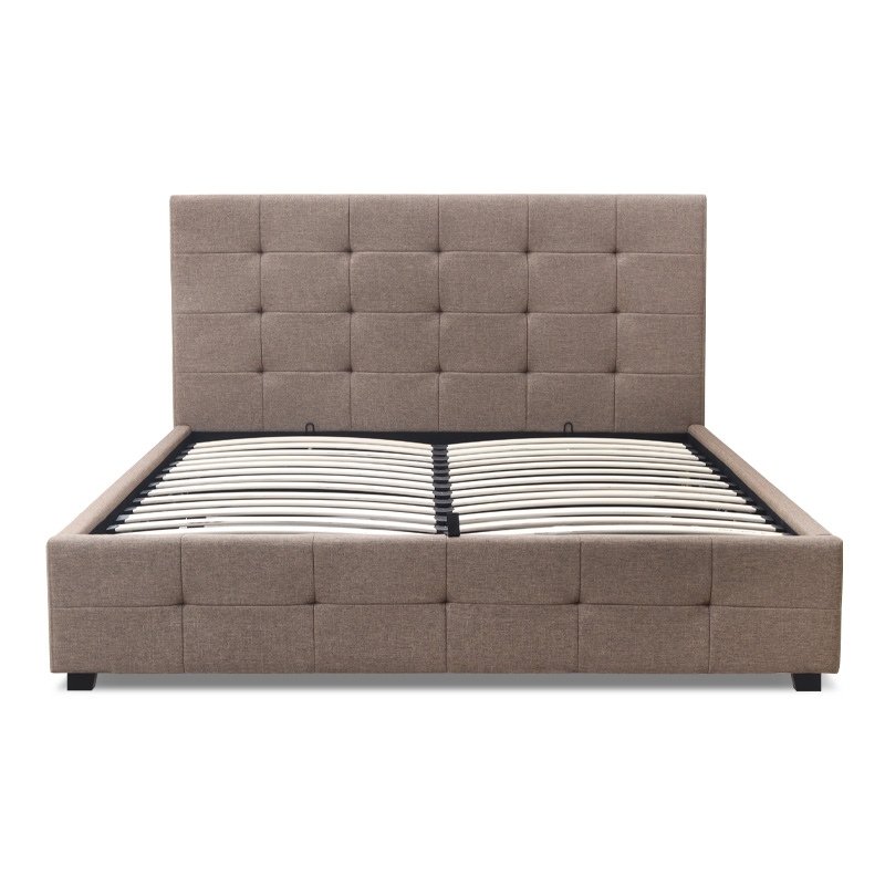 Κρεβάτι Iro Megapap υφασμάτινο με αποθηκευτικό χώρο χρώμα μπεζ – καφέ 160×200εκ.
