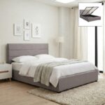 0276343 Κρεβάτι Ovelia Megapap υφασμάτινο χρώμα μπεζ 150×200εκ. Ύφασμα, 1 Τεμάχιο