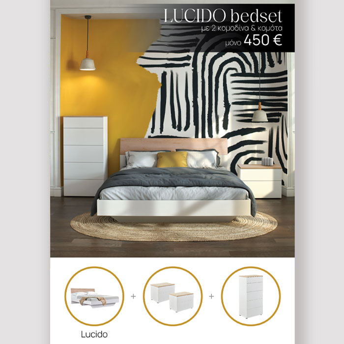 09-2151 LUCIDO ΚΡΕΒΑΤΟΚΑΜΑΡΑ SET 3+1 ΛΕΥΚΟ OAK ΦΥΣΙΚΟ ΔΙΑΣΤΑΣΕΙΣ ΚΡΕΒΑΤΙΟΥ 165.5x210x90, ΔΙΑΣΤΑΣΕΙΣ ΚΟΜΟΔΙΝΟΥ: 58x39x44.5,ΔΙΑΣΤΑΣΕΙΣ ΣΥΡΤΑΡΙΕΡΑ: 58x39x116.5, 1 Τεμάχιο