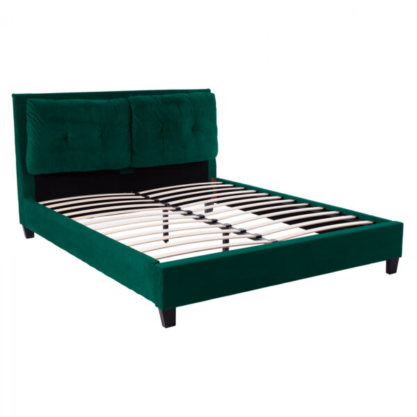 Εμείς λοιπόν, σας προσφέρουμε το κρεβάτι BILLIE για να απολαμβάνετε κάθε στιγμή τον ύπνο σας. Σε διάσταση για στρώμα 160×200 εκ, είναι επαρκέστατα άνετο για να χωρέσουν δύο άτομα. Έχει κεφαλάρι με δύο καπιτονέ μαξιλάρια δεμένα πάνω του (μη αποσπώμενα) για να προσφέρει άνεση όταν κάθεστε για να διαβάσετε το βιβλίο σας, ενώ ολόκληρη η επένδυσή του έχει γίνει με εξαιρετικής ποιότητας βελούδινο ύφασμα σε χρώμα κυπαρισσί. Το στρώμα «κάθεται» πάνω σε δύο σειρές από ανατομικές τάβλες, ακολουθώντας τον παραδοσιακό τρόπο κατασκευής κρεβατιού.