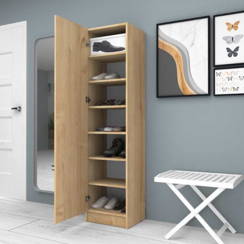 Ντουλάπα ρούχων – παπουτσοθήκη Petro Megapap μονόφυλλη χρώμα φυσικό οξιάς 45x38x180εκ.