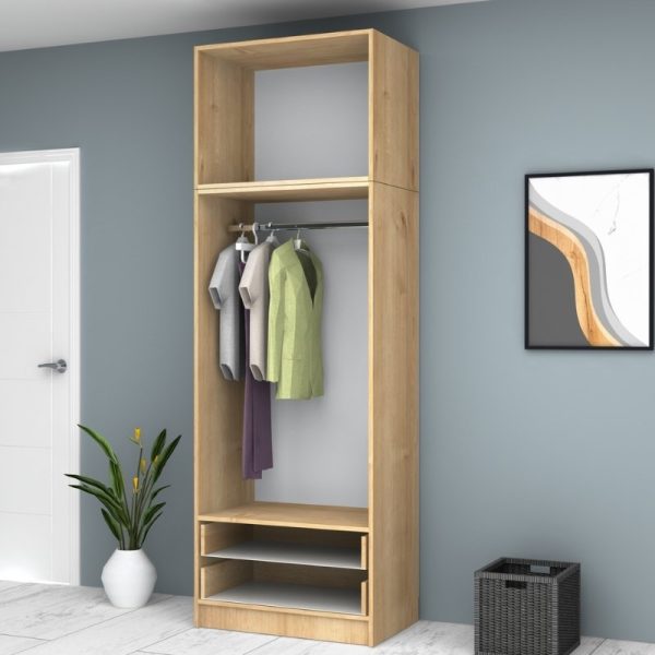 0256525 Ντουλάπα ρούχων Ricardo Megapap δίφυλλη με πατάρι χρώμα φυσικό οξιάς 80×51,8×240εκ. Μοριοσανίδα με επένδυση μελαμίνης, 1 Τεμάχιο
