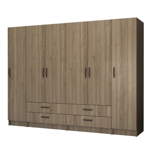 Ντουλάπα ρούχων Ricardo Megapap εξάφυλλη χρώμα καρυδί 240×61,8×181εκ.