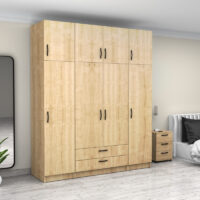 0260862 Ντουλάπα ρούχων Victoria Megapap τετράφυλλη με πατάρι και συρτάρια χρώμα φυσικό οξιάς 200x60x240εκ. Μοριοσανίδα με επένδυση μελαμίνης, 1 Τεμάχιο20 Ιανουαρίου 2025