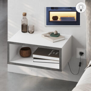 0279163 Κομοδίνο επιτοίχιο Brik Megapap με LED χρώμα λευκό – γκρι ρετρό 45x30x18εκ. Μοριοσανίδα με επένδυση μελαμίνης, 1 Τεμάχιο