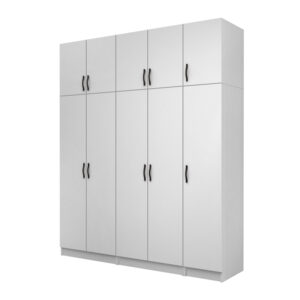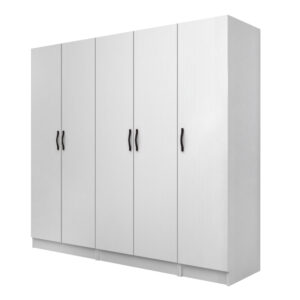 0275341 Ντουλάπα ρούχων Vivian Megapap πεντάφυλλη με πατάρι χρώμα λευκό 200×51,8×240εκ. Μοριοσανίδα με επένδυση μελαμίνης, 1 Τεμάχιο