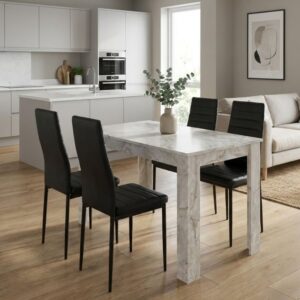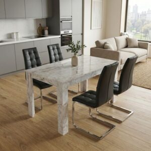 0280938 Σετ τραπεζαρία 5τμχ Darlen – Vela Megapap χρώμα λευκό εφέ μαρμάρου – μαύρο 125x72x74εκ. Τεχνόδερμα/Μοριοσανίδα με επένδυση μελαμίνης, 1 Τεμάχιο