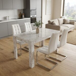 0280939 Σετ τραπεζαρία 5τμχ Darlen – Vela Megapap χρώμα λευκό εφέ μαρμάρου – λευκό 125x72x74εκ. Μοριοσανίδα με επένδυση μελαμίνης, 1 Τεμάχιο